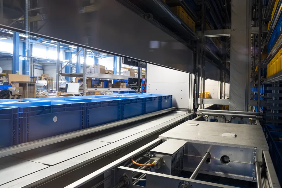 The vertical stackers work together via VertiNode Ai software, which we developed in-house. VertiNode Ai also interfaces with the client‘s warehouse management system (WMS). The loading of goods and their subsequent picking is thus managed using artificial intelligence (Ai), which, based on data from the WMS system, optimises the maximum capacity utilisation of each stacker over time.